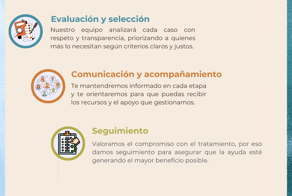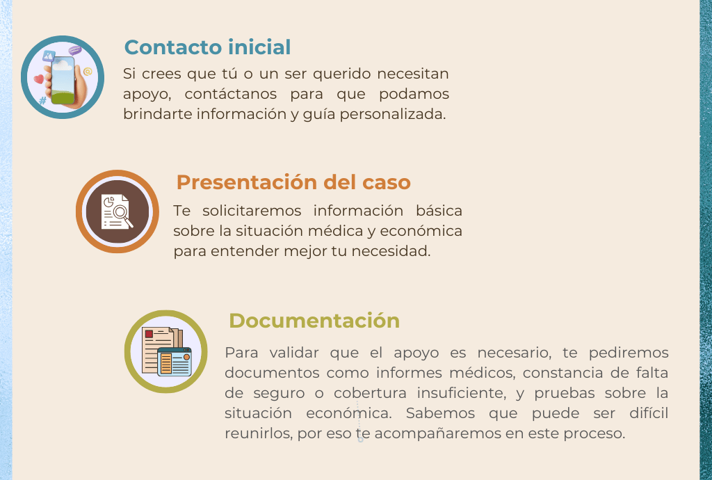 En VitalNexus Fundación estamos comprometidos en apoyar a personas que necesitan tratamientos médicos y no cuentan con seguro o tienen recursos limitados. Para brindarte esta ayuda, valoramos casos que realmente lo requieren y que cumplan con ciertos criterios básicos relacionados con la situación médica y económica.