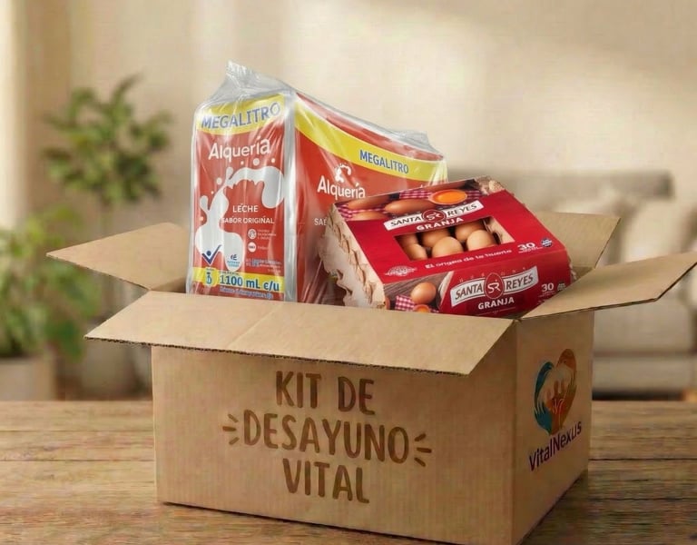 📦 2. Recibe tu kit en casa: Como agradecimiento, te enviamos a domicilio un kit de desayuno (leche, huevos y/o café, según el aporte que elijas).